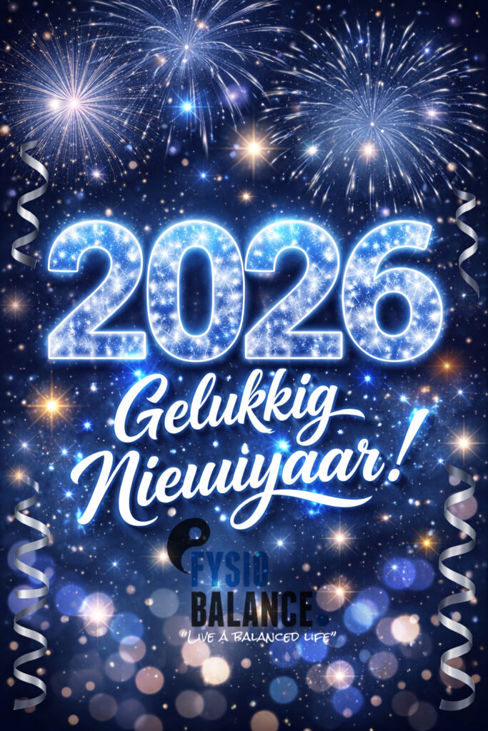 Gelukkig nieuwjaar! De beste wensen voor 2026: gezond, sportief en vol energie! Wij staan klaar om je in beweging te houden Het team van Fysio Balance